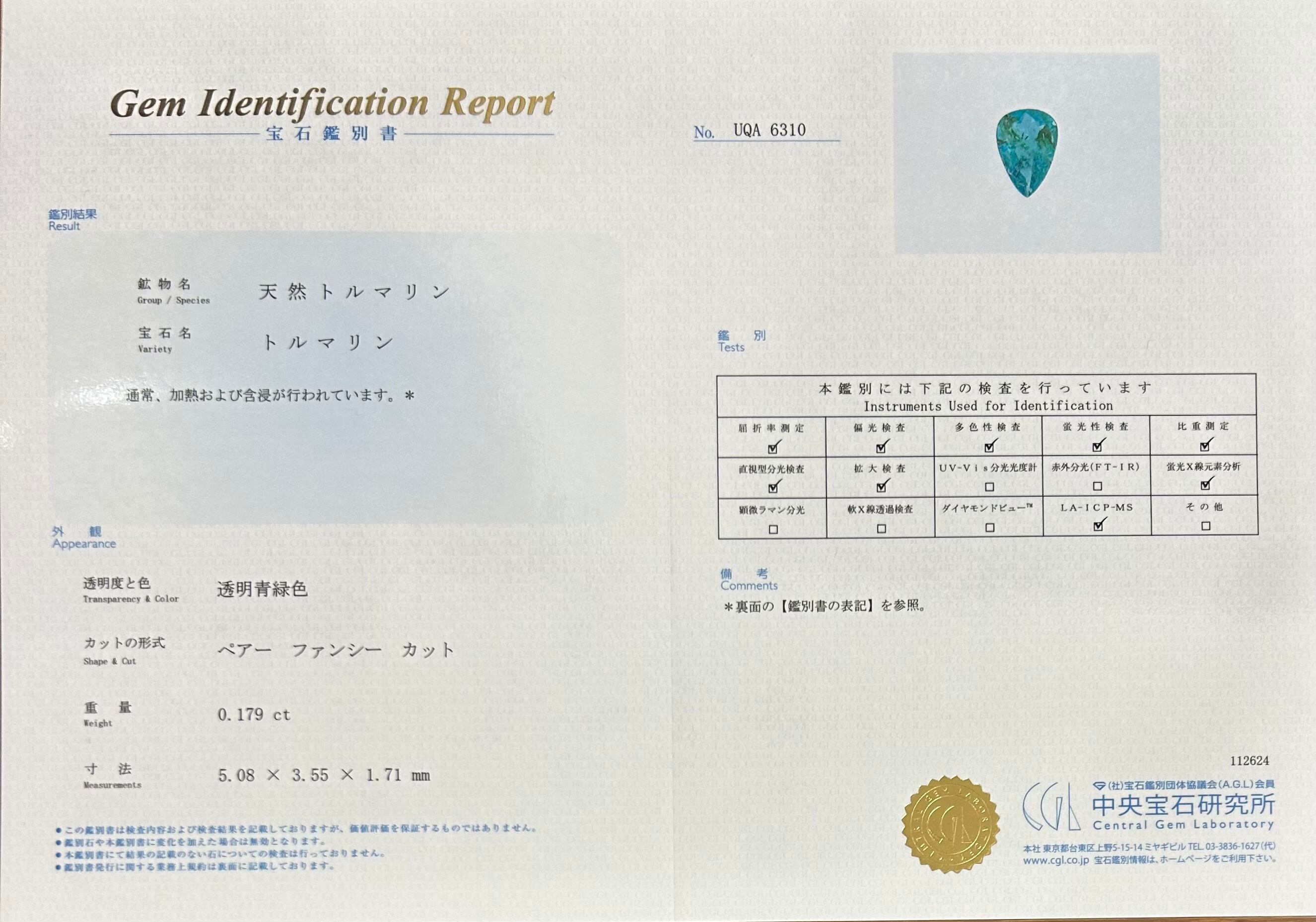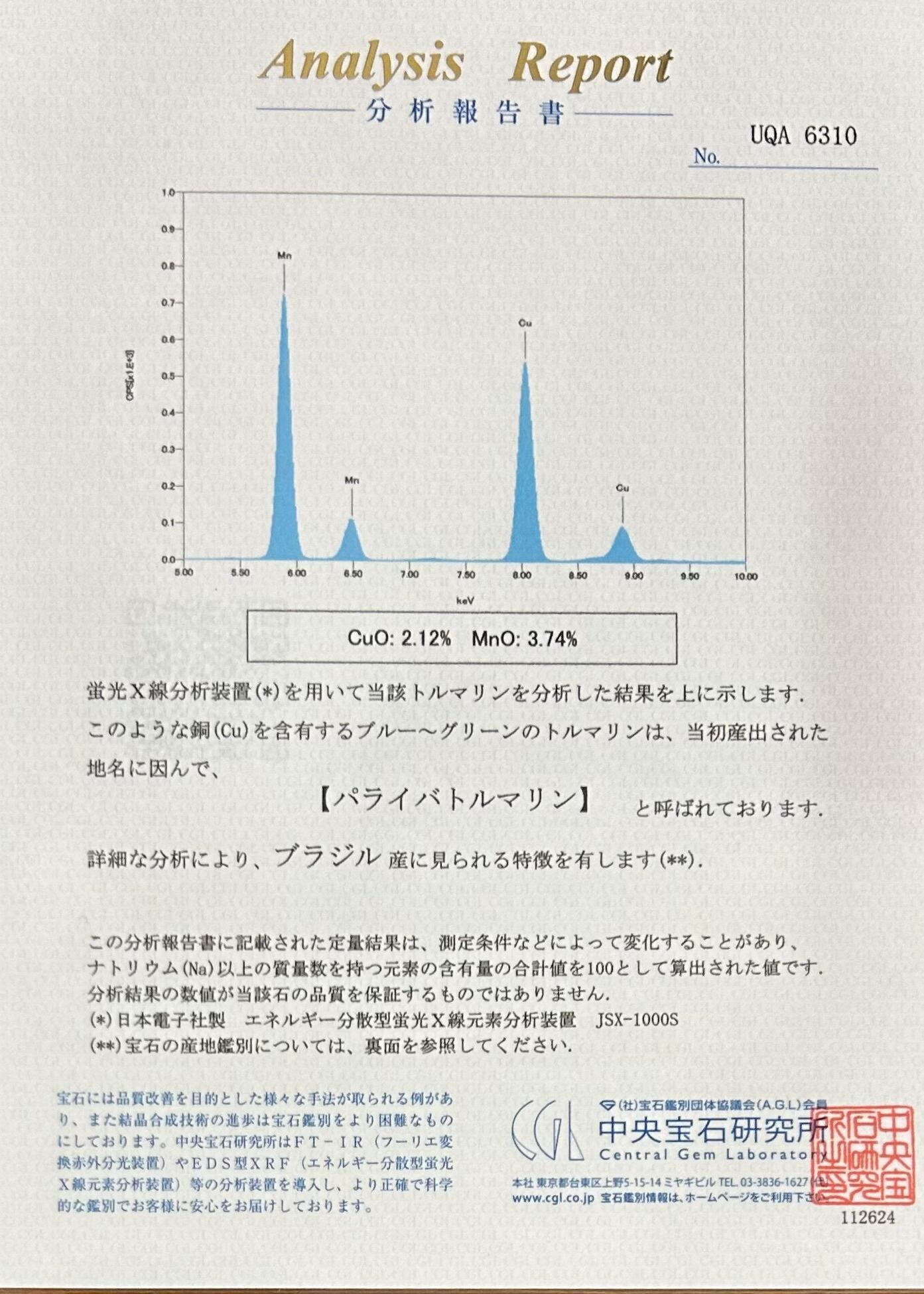 CGL鑑別書付き✴︎ブラジル産 パライバトルマリンルース
