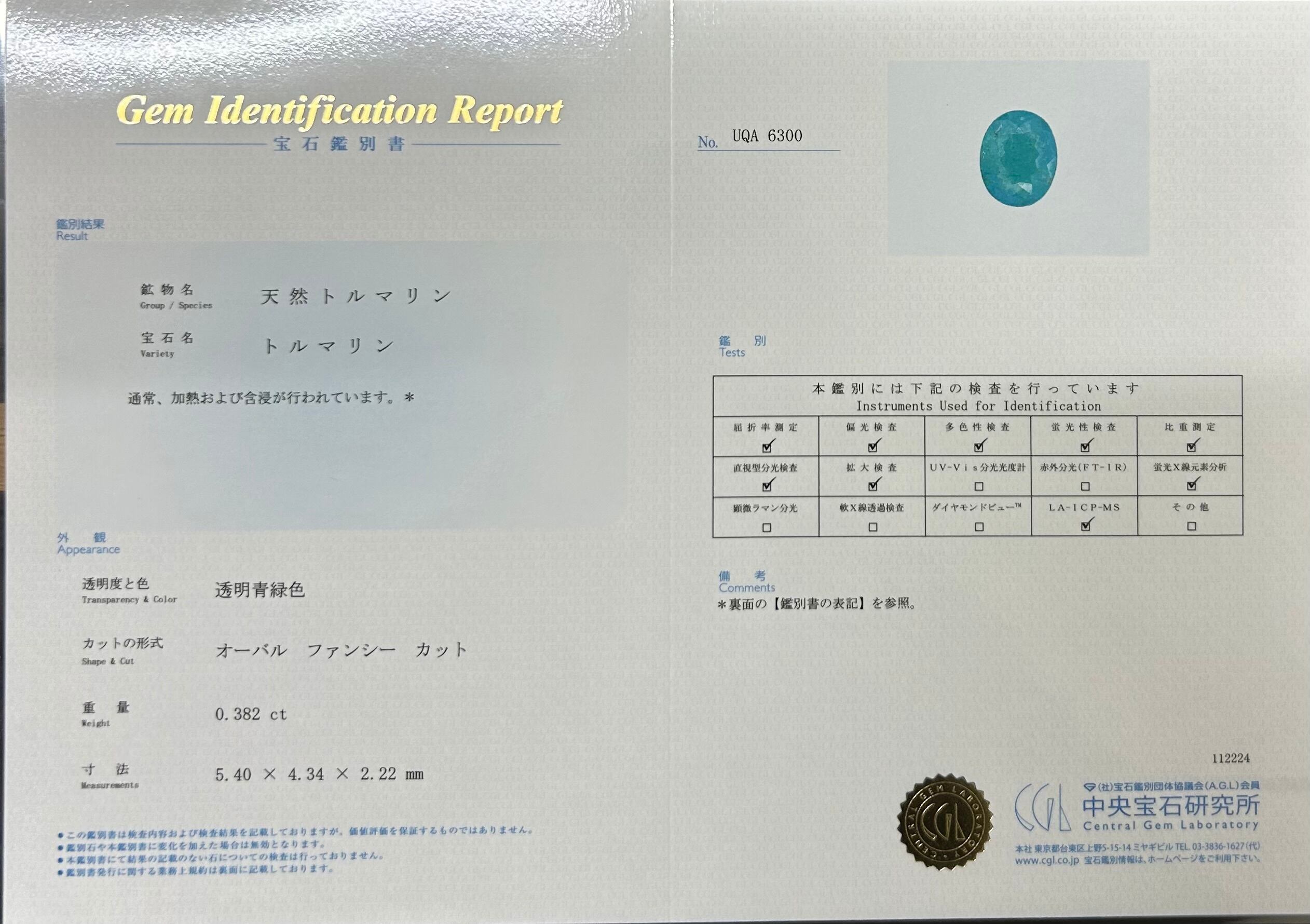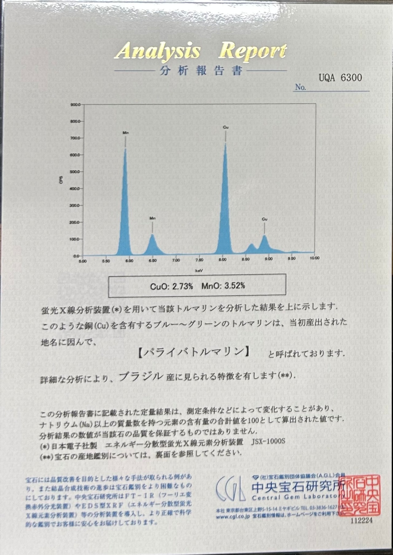 CGL鑑別書付き