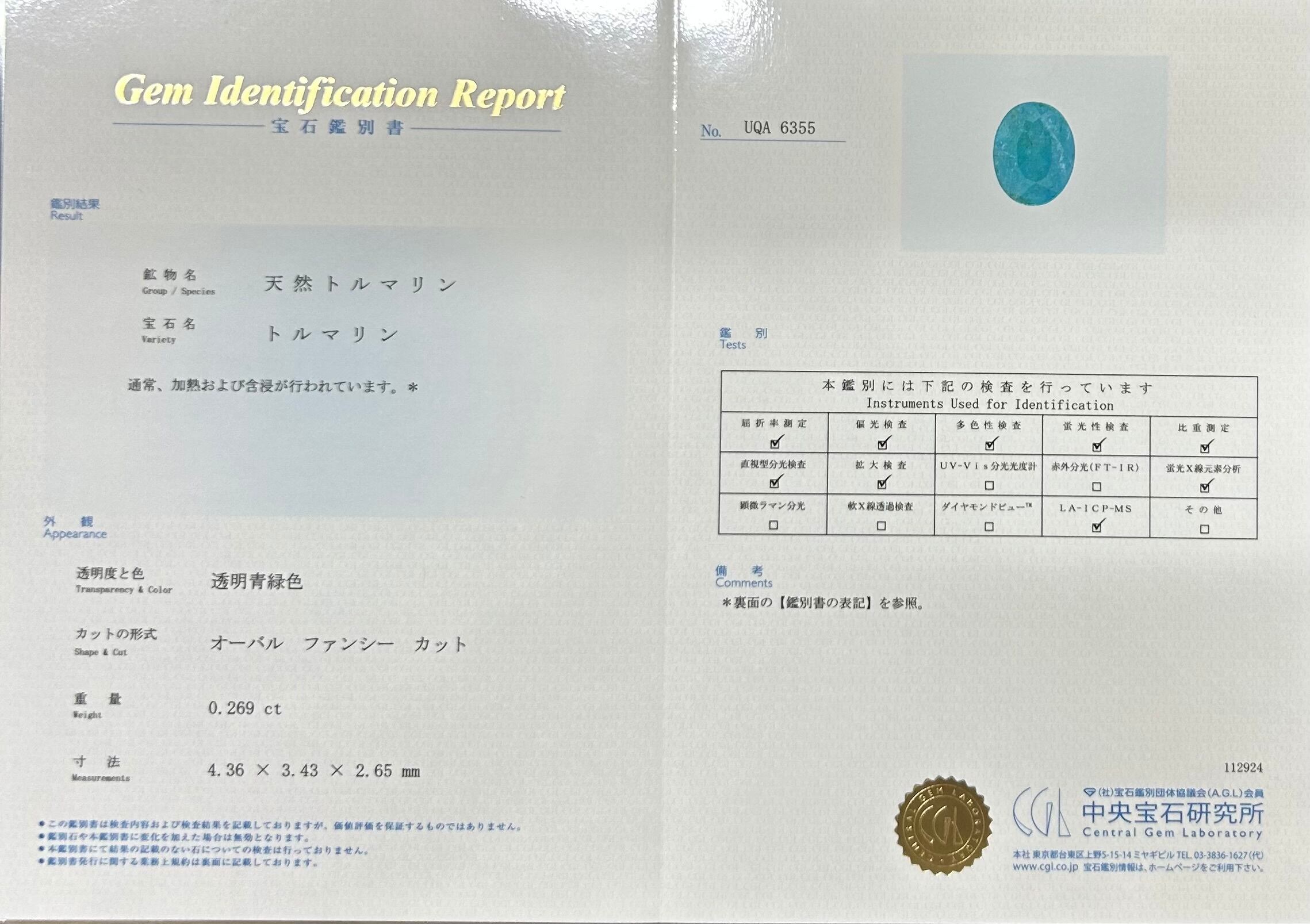 CGL鑑別書付き